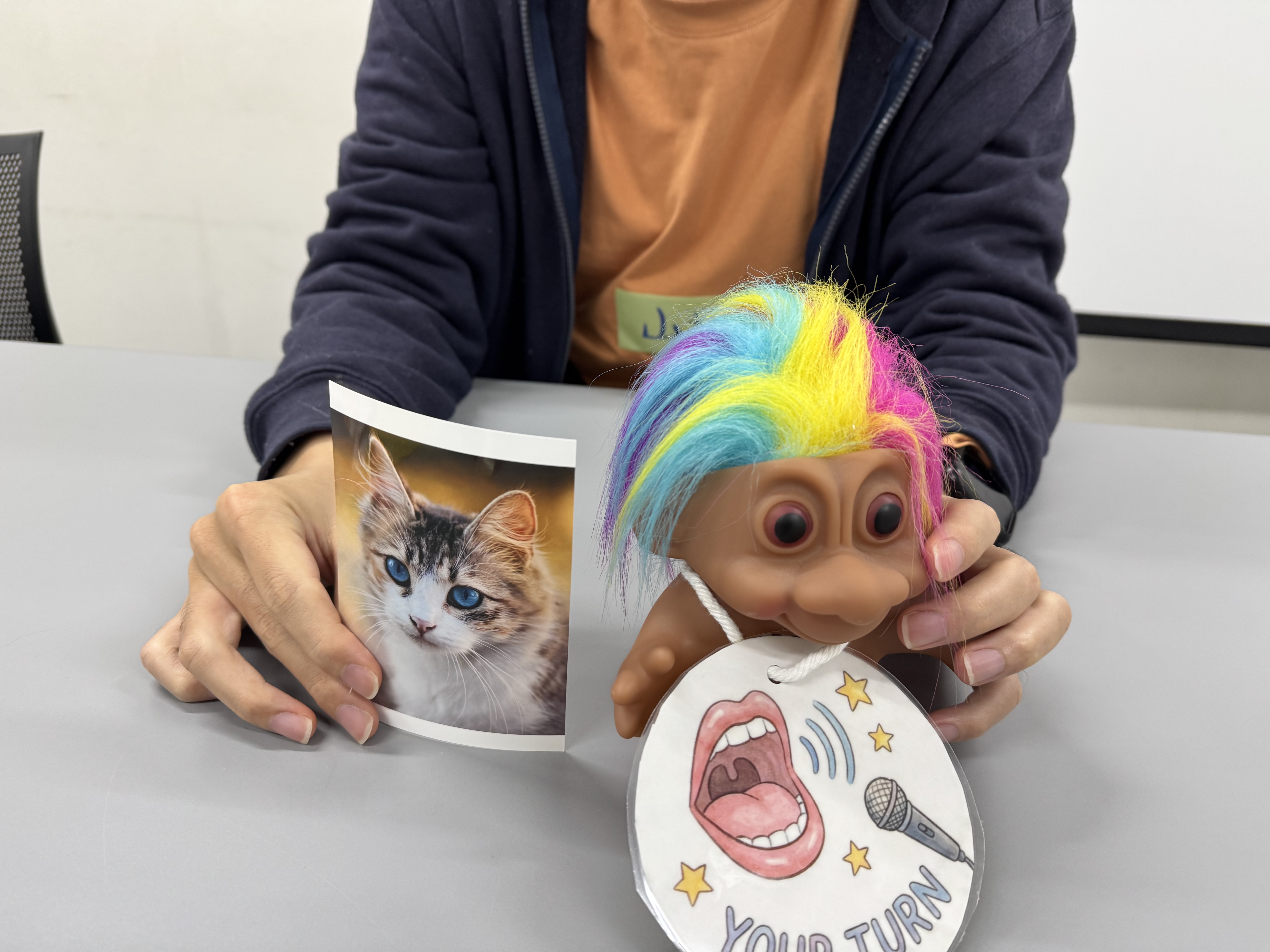 発言する人は、ハッピー君を持ちます。他の人はしっかり話を聞きましょう!、というワークショップを楽しく盛り上げる仕掛けの一つなんです。