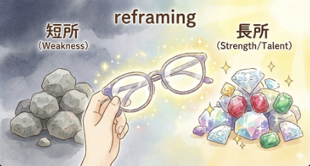 心理学に「リフレーミング」という言葉があります。 直訳すると「枠組み(フレーム)を付け替える」こと。
