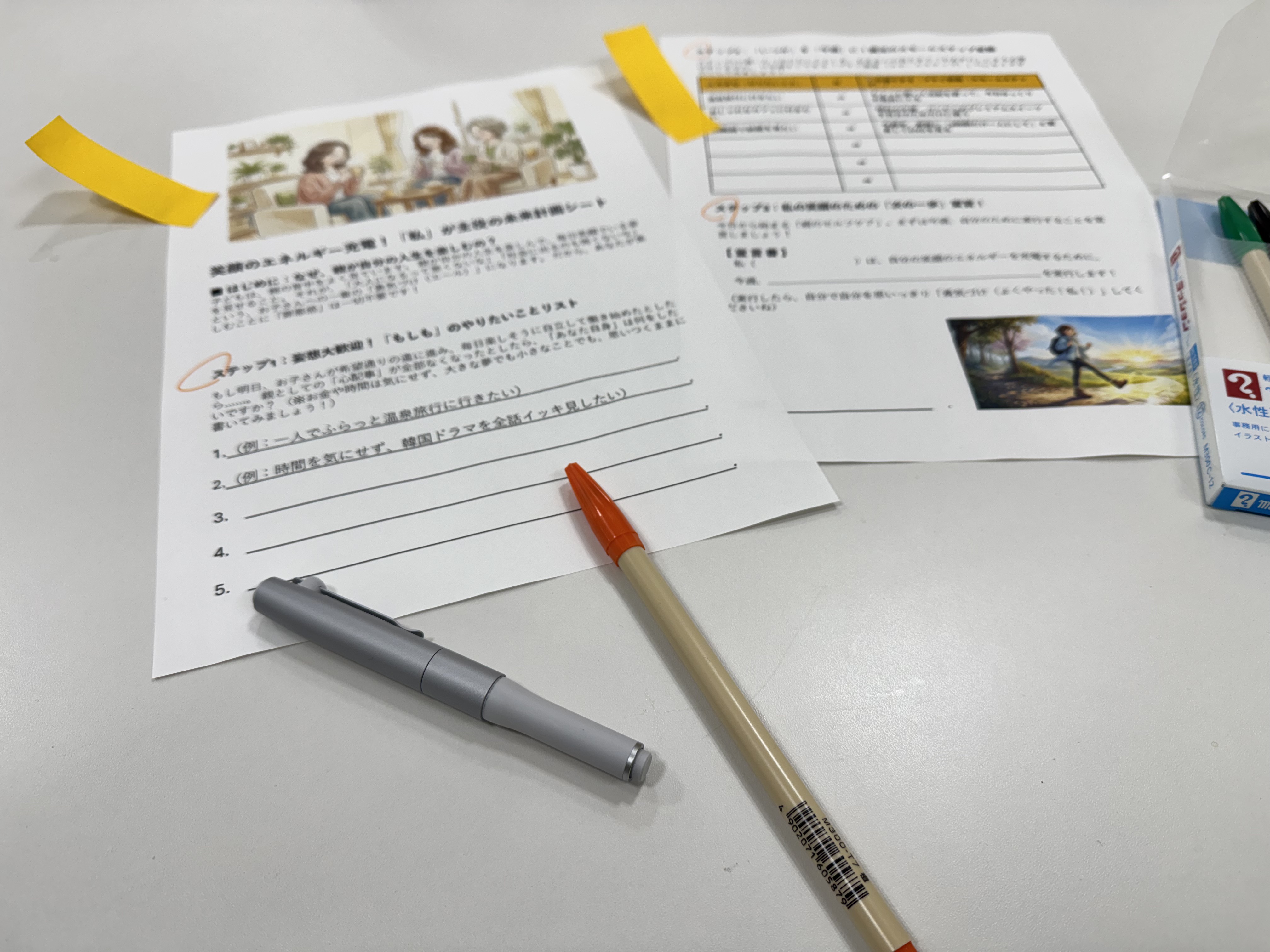 壮大な目標ではなく、「明日、自分のためにできる小さなご褒美」を皆でワイワイ宣言し合う、楽しい時間にしたいと思っています。