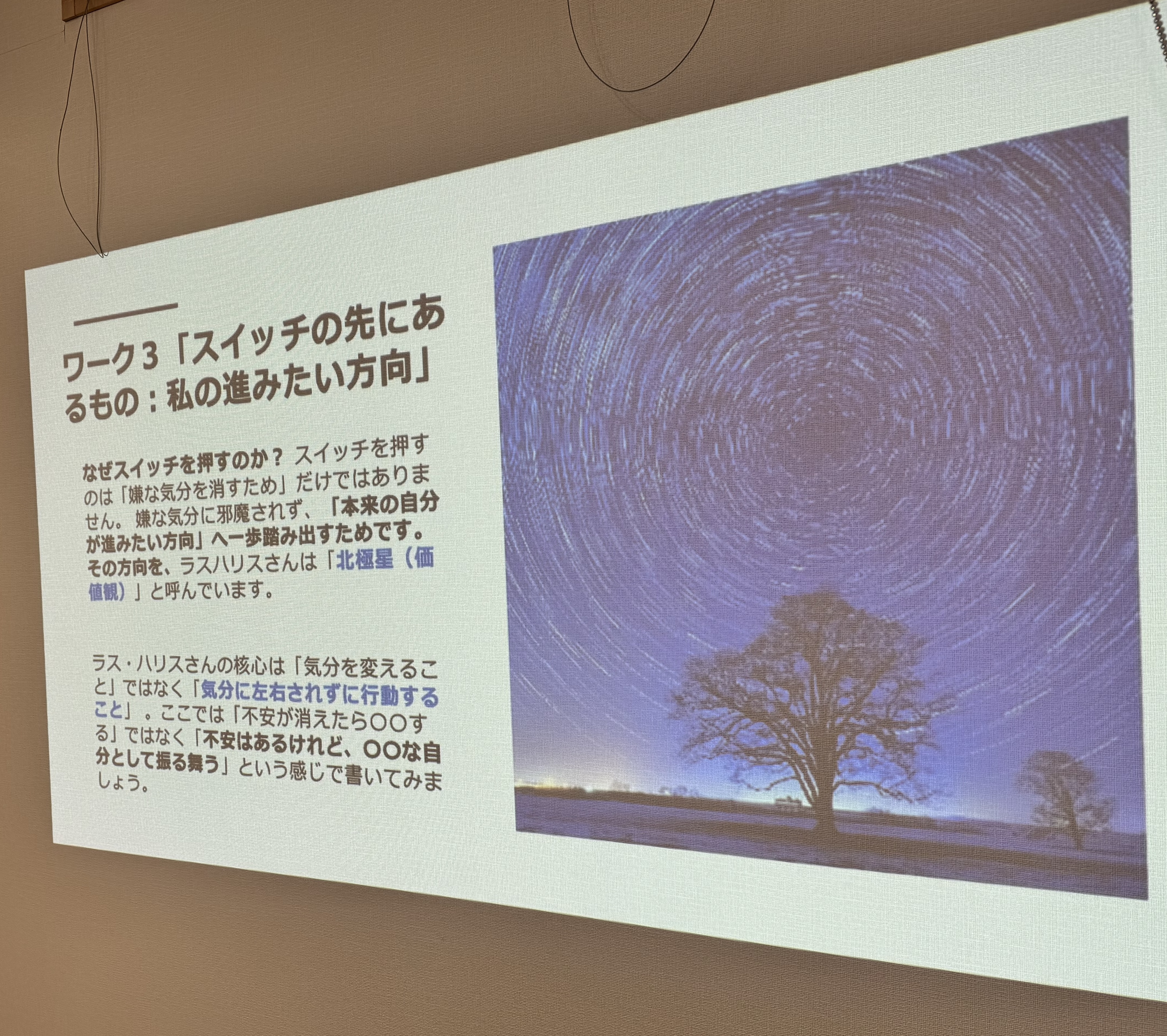 スイッチを押すのは、嫌な気分を消すためではありません 。 嫌な気分に邪魔されず、自分が進みたい『北極星(価値観)』に向かって一歩踏み出すためです 。