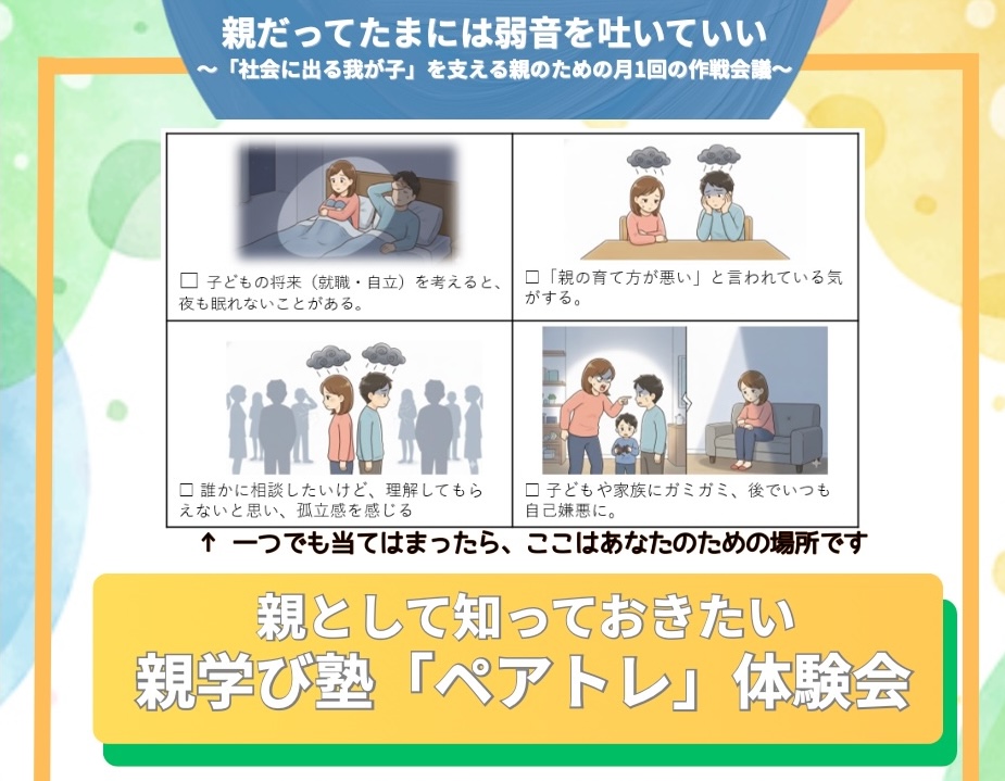 そう、来期からのメインテーマは**『親だってたまには弱音を吐いていい』**。 半年間、同じ悩みを持つ仲間と一緒に少しだけ荷物を下ろせる場所を作っていきます。まずは今週末、その温かい空気を体験しに来てくださいね。