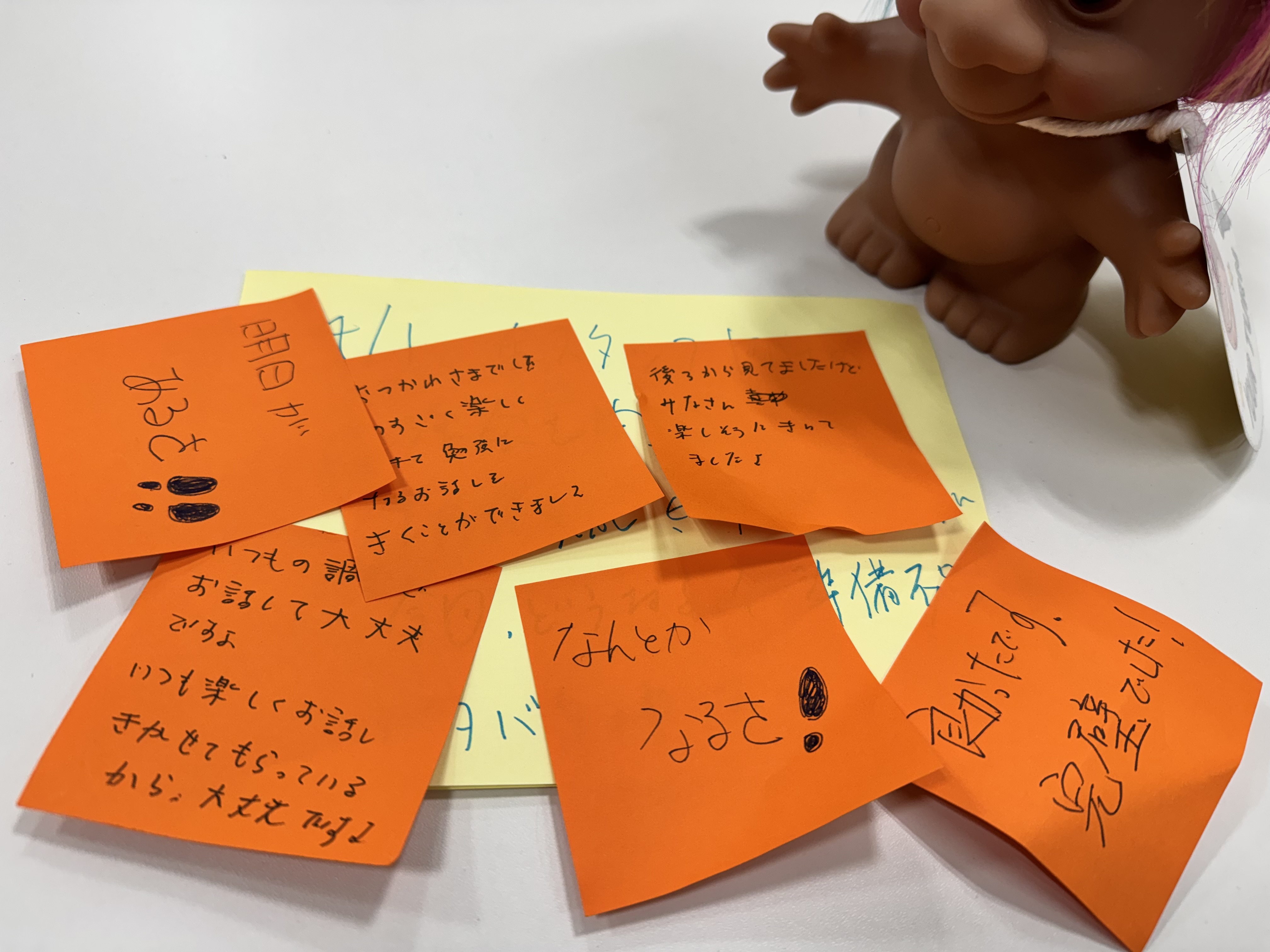 そして後半は、付箋を使った「かける言葉(勇気づけ)」のプレゼント交換。