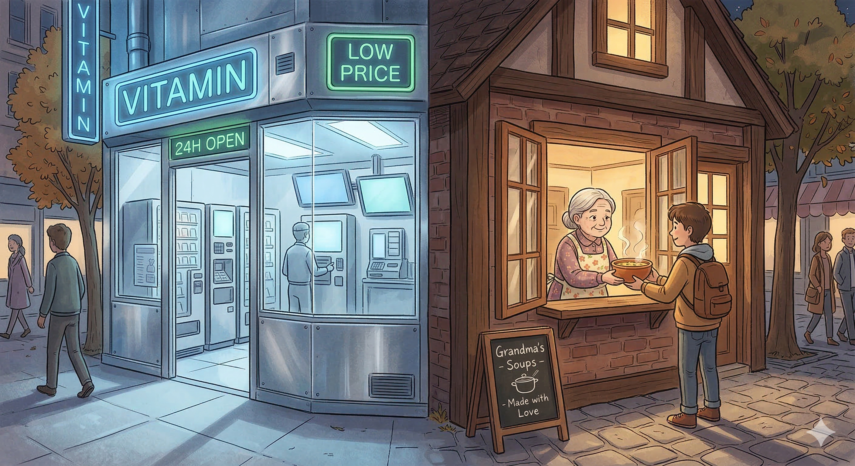 世の中には、最新の設備で「ビタミン豊富!」「24時間営業!」「低価格!」と謳う大きなスープ工場がたくさんあります。でも、私たちが目指すのはそこではありません。