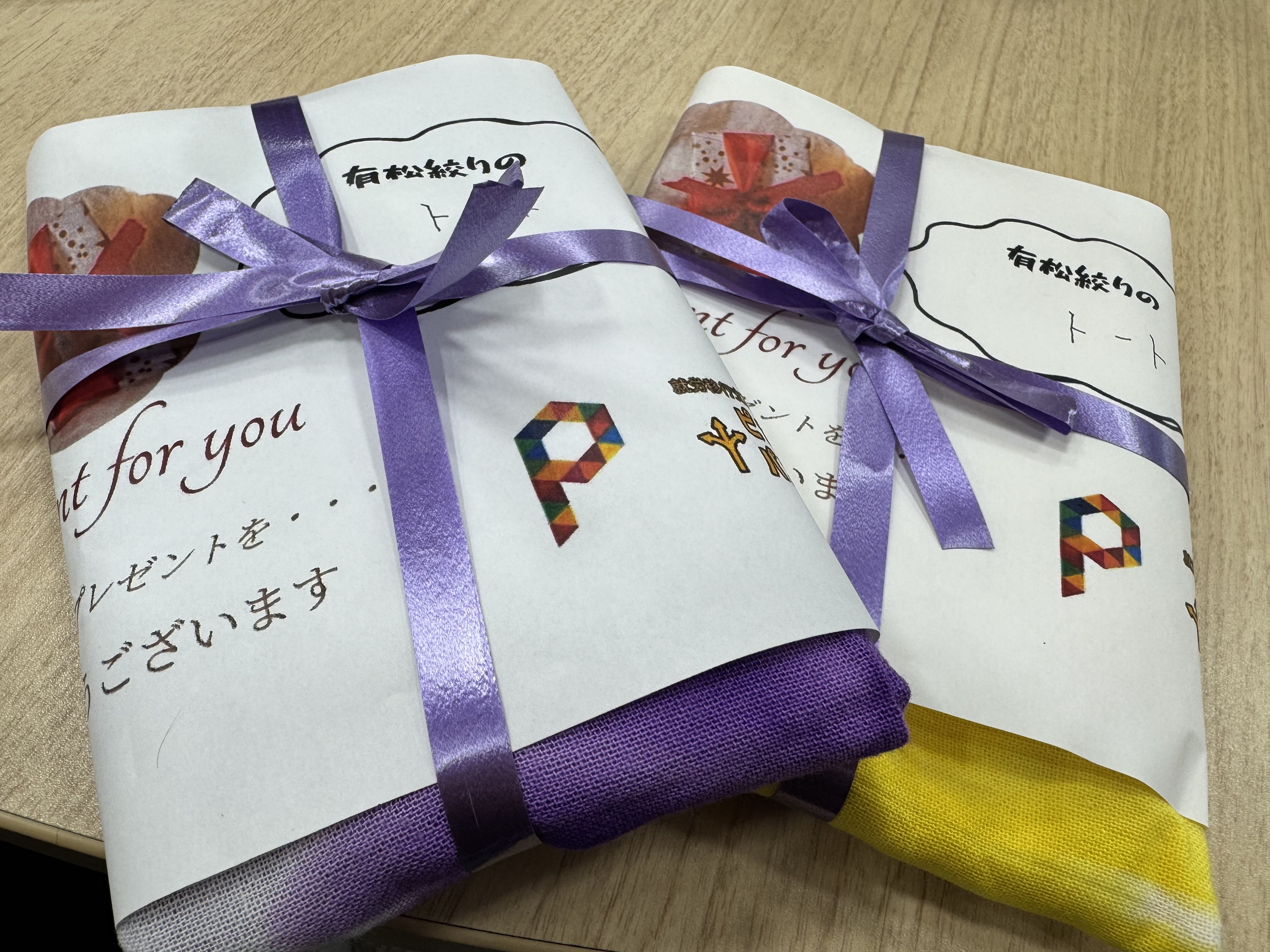 さらに今回は、地元の伝統工芸である「有松絞り」を施した手作りトートバッグも贈られました。 一枚一枚、丁寧に染め上げられた模様は、お二人のこれまでの歩みと同じく、どれ一つとして同じものはありません。 手仕事の温もりと、地元の伝統が支えてくれる安心感。重い荷物も、このバッグなら軽やかに運んでいけるはずです。