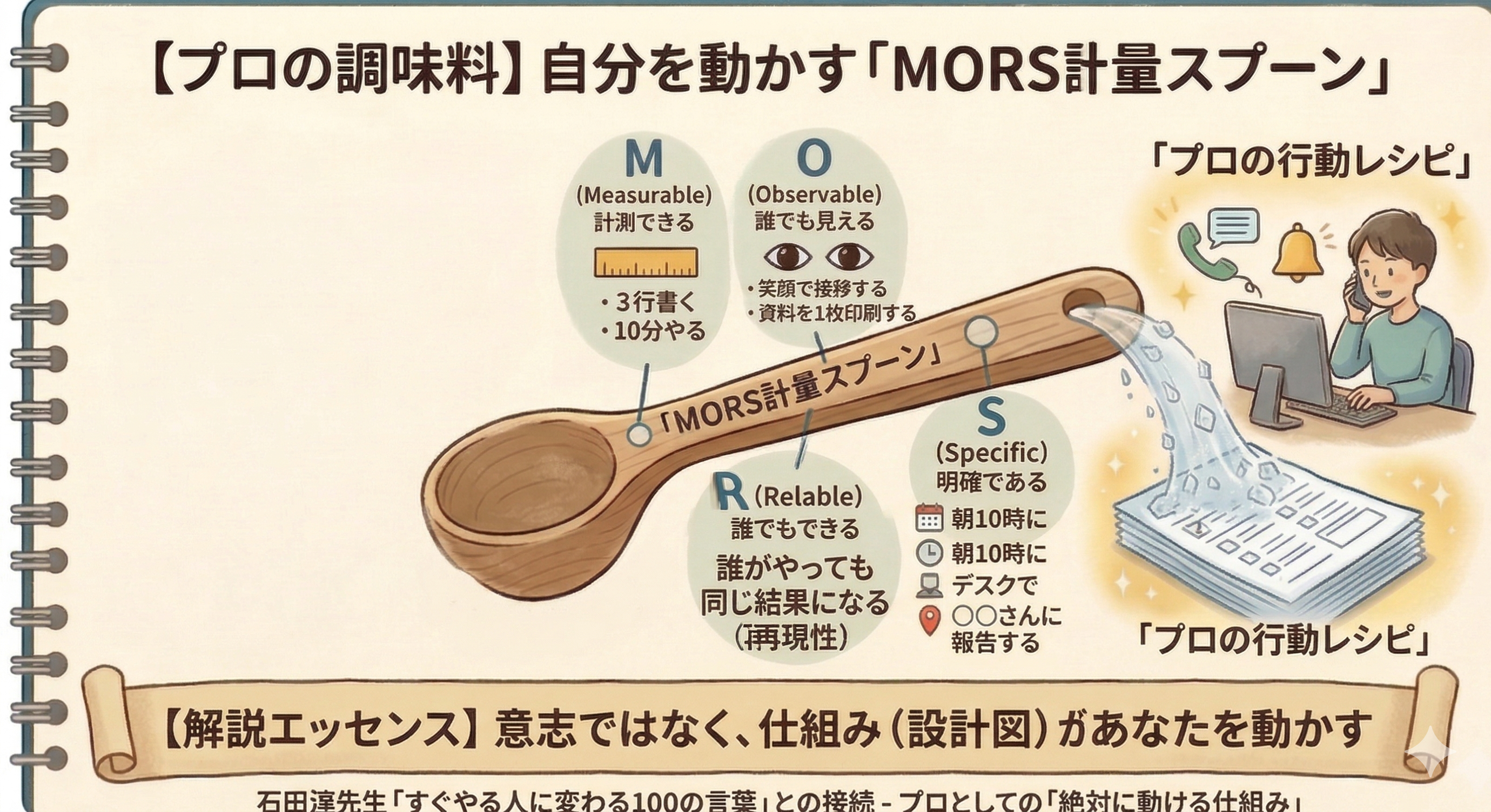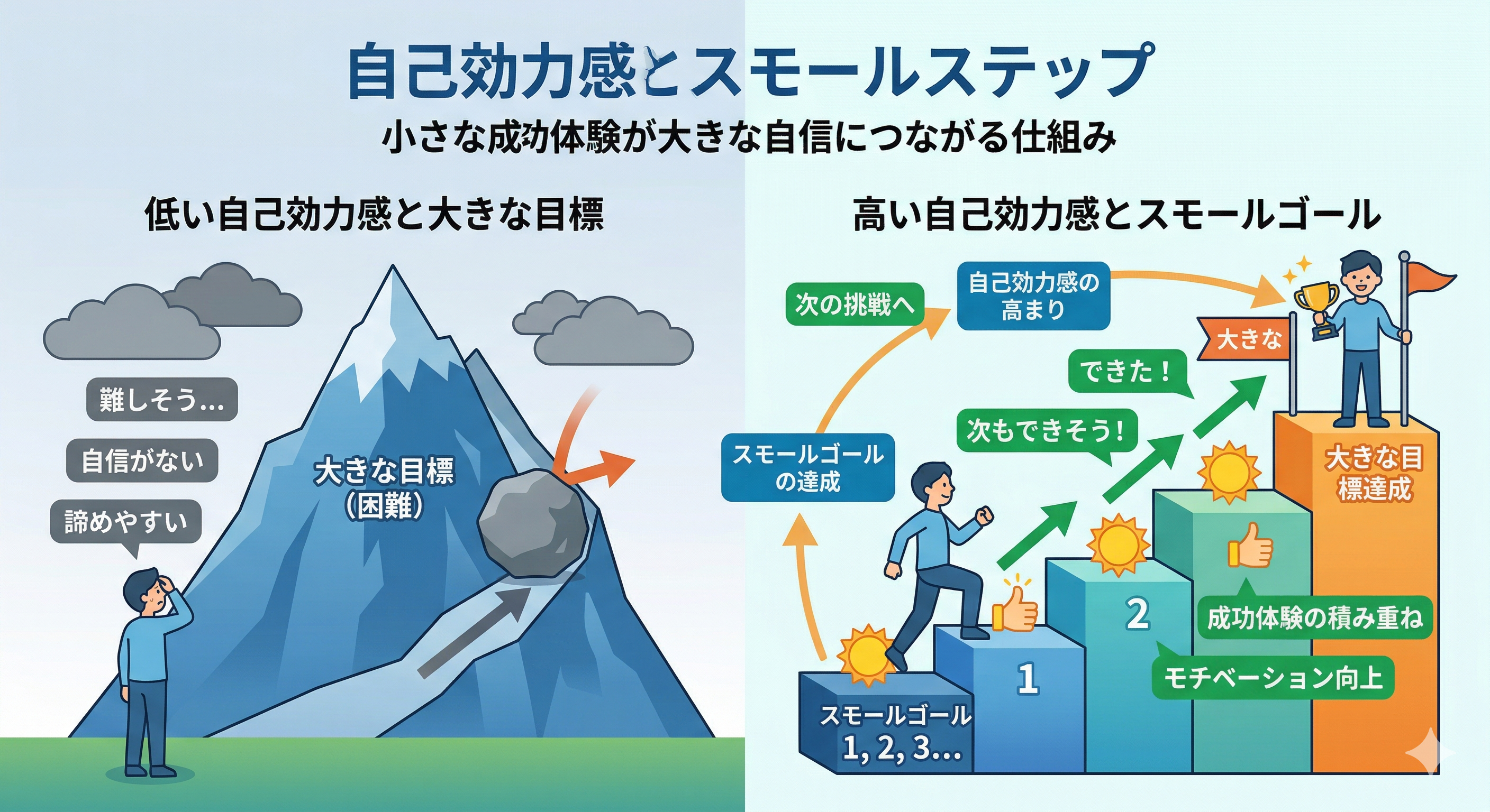自信(自己効力感)は、根性でひねり出すものではありません。 目標をMORS(モーズ)の法則などで数値化し、計測可能な「動作」にまで細かく刻んでみてください。