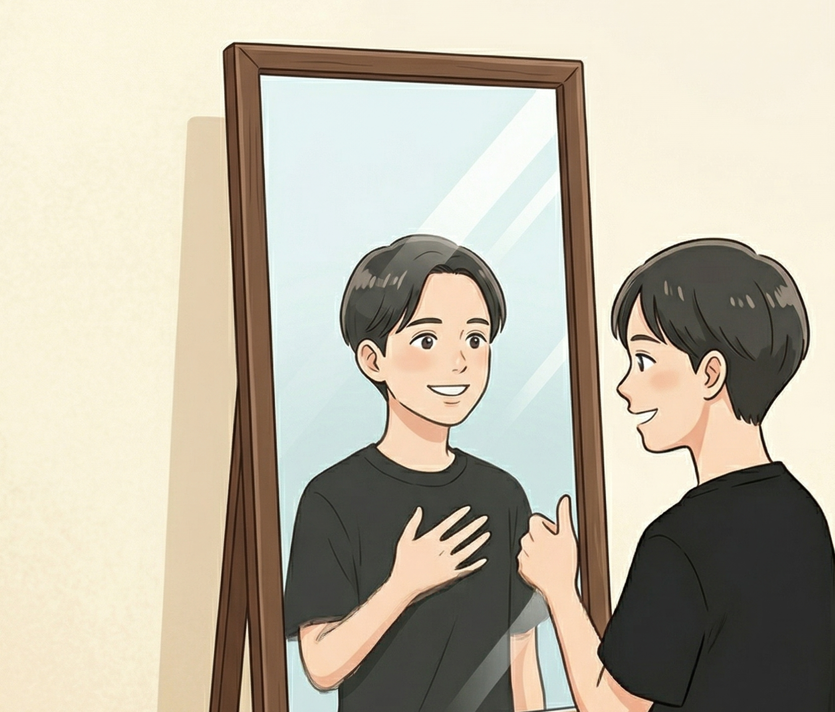 2.姿見で「靴の先まで」チェック: 数千円で買える、壁に貼れる軽量なミラーで十分です。姿見(全身鏡)を見る習慣には、外見の向上だけでなく、心理的な安定など、多くのメリットがあると言われています。鏡の中の自分に向かって微笑みかけることで、気持ちを明るくしたり、自己肯定感を高める「ミラーワーク」なんて今日から試しみませんか?