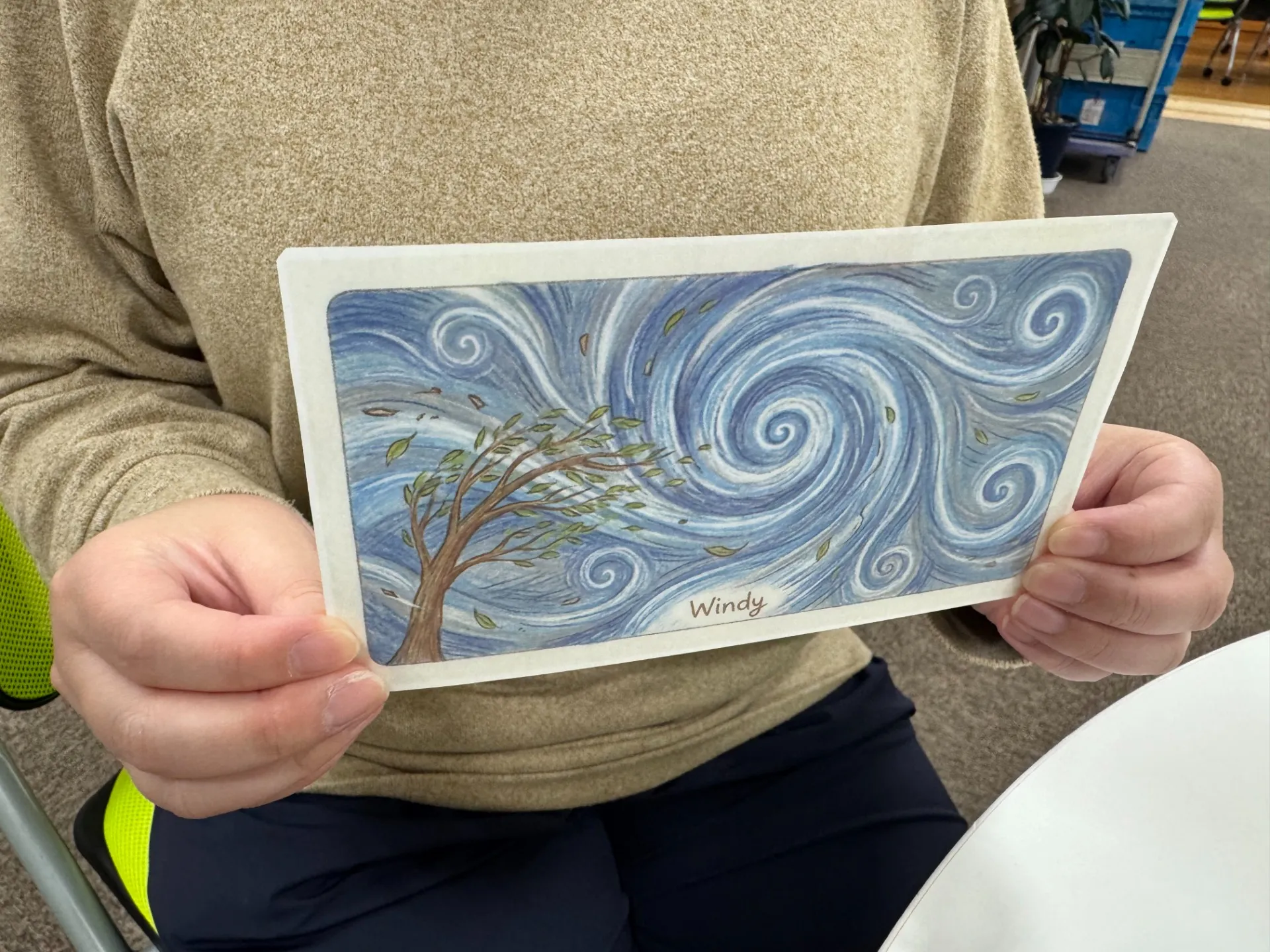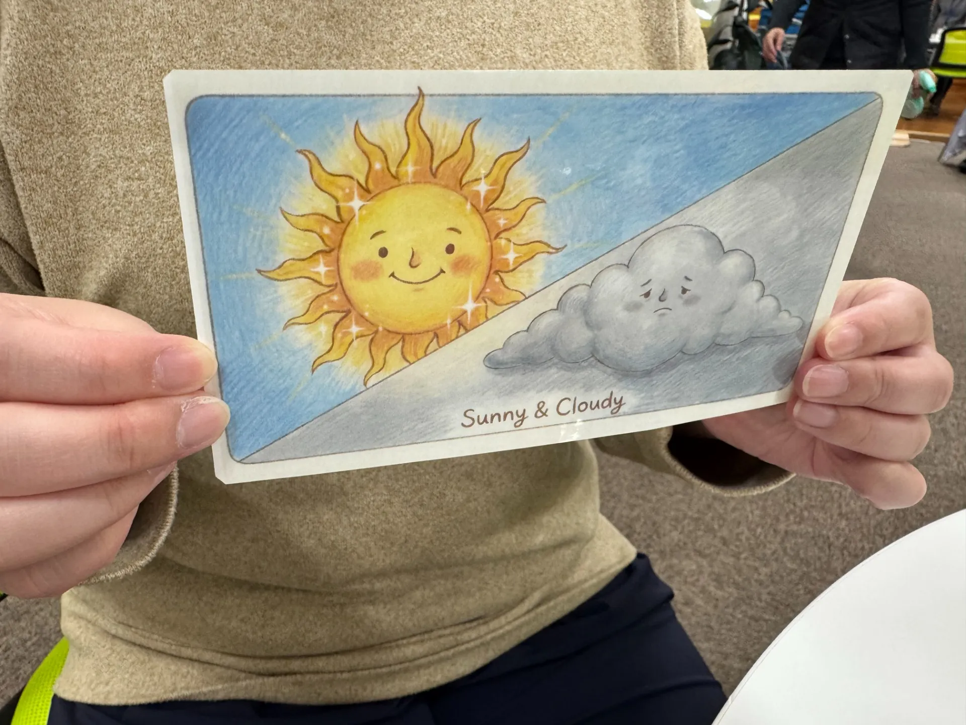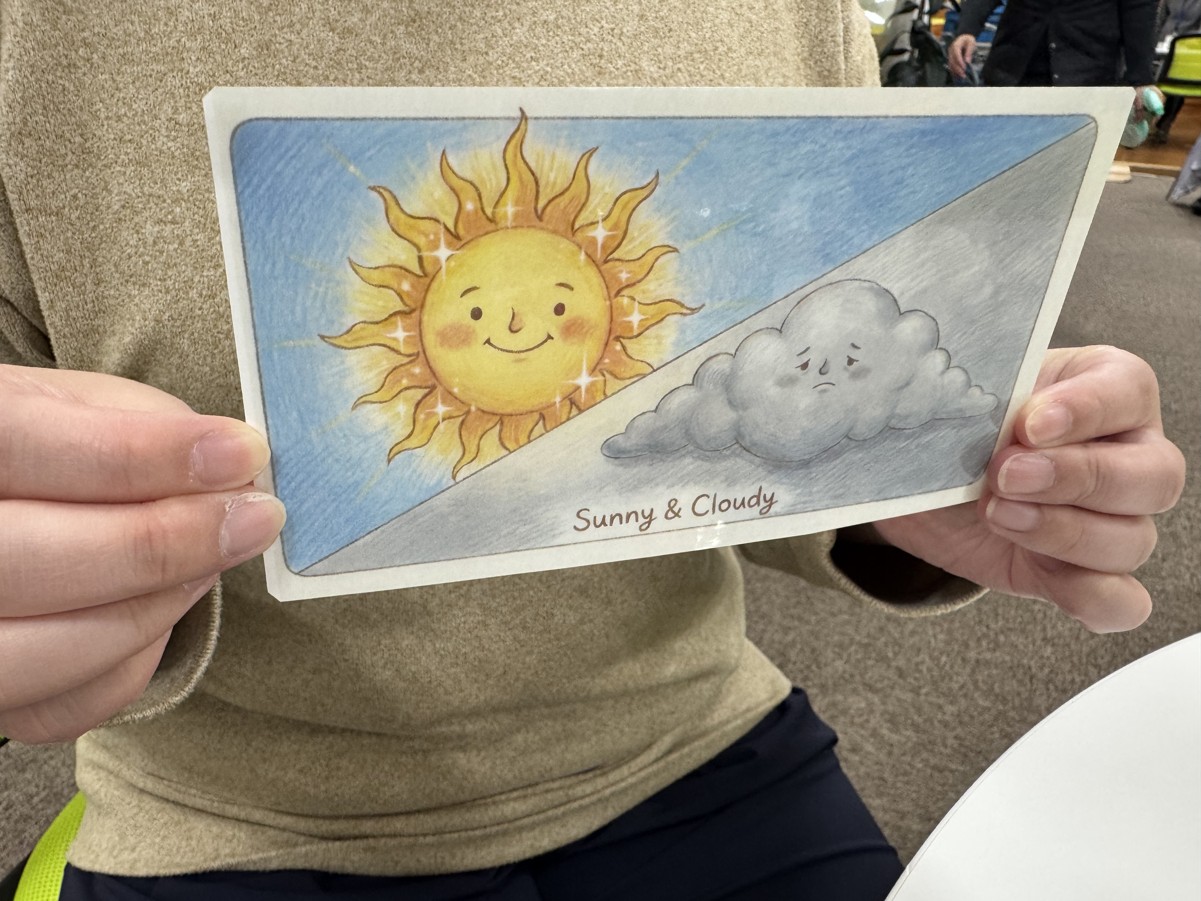 帰りの際の「今の気持ちは?」ワークでは、嵐が止んだかのように、「曇りのち晴れ」カードを選んでいただきました。