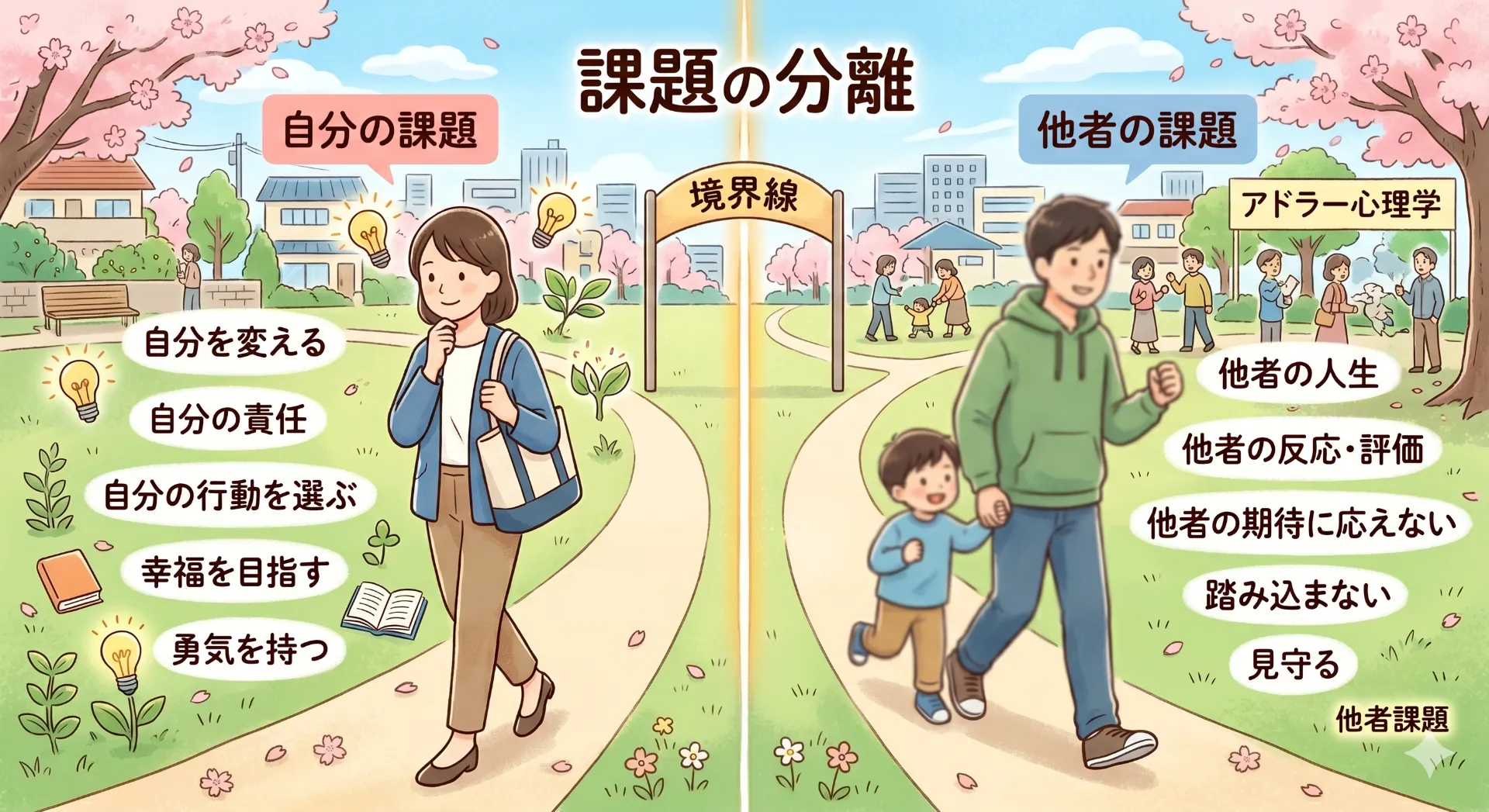 でも、アドラー心理学で言う「課題の分離」——つまり、「これは誰の課題か?」を整理するワークを共に行ったとき、その方の表情がフワッと和らぐ瞬間がありました。 「あ、これは私が背負わなくていい荷物だったんだ」と気づかれた瞬間です。