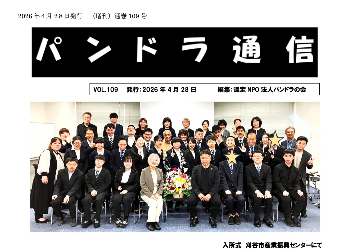 今日は、最新の「パンドラ通信109号」が完成しましたので、みなさまにお届けします。